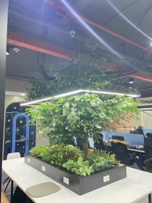 Ngoài ra, những bồn cây hay bồn cỏ, bồn hoa nhân tạo trang trí còn xuất hiện ở nhiều không gian khác. Mang đến điểm nhấn thu hút mọi ánh nhìn với màu xanh nổi bật của mình. Cây giả trang trí hay bồn cây tiểu cảnh đã và đang trở thành làn gió, xu hướng mới mang đến không gian nội thất ĐẸP, ĐỘC và LẠ